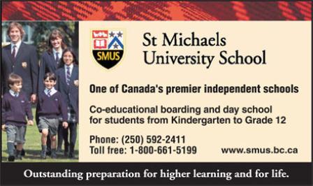 St. Michaels University School,简称SMUS,是BC 省排名第一的学校。由建校于1906年的University School 及建校于1910年的 St. Michaels School合并而成,两所学校于合并前皆只收男生,1978年SMUS开始招收男女学生。目前招收幼儿园到12年级男女的学生,本地学生多为通勤,来自其它地区的学生则皆住宿,全校约870名学生,55﹪为男生,45﹪为女生,寄宿生中约50﹪为国际学生。